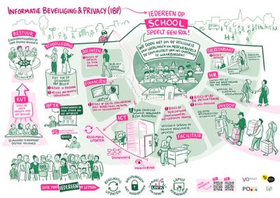 Niet alleen (school)bestuurders zijn verantwoordelijk voor het op orde krijgen van Informatiebeveiliging en Privacy (IBP). Het vraagt inzet van de hele organisatie. In deze praatplaat krijg je een overzicht van wat jij vanuit jouw rol kan bijdragen aan digitaal veilig onderwijs.